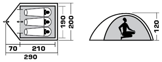 Purpose: trekking, number of places: 3, features: air vents, inner tent, taped seams, assembly type: inner frame, tent water resistance: 2000 mm w.c. Art., number of rooms: 1, number