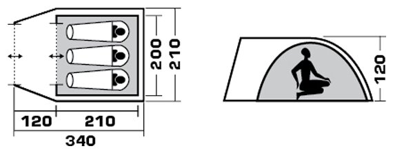 Purpose: trekking, number of seats: 3, features: ventilation holes, inner pockets, inner tent, windows, taped seams, assembly type: outer frame, awning water resistance: 3000 mm w.c. art., quantities