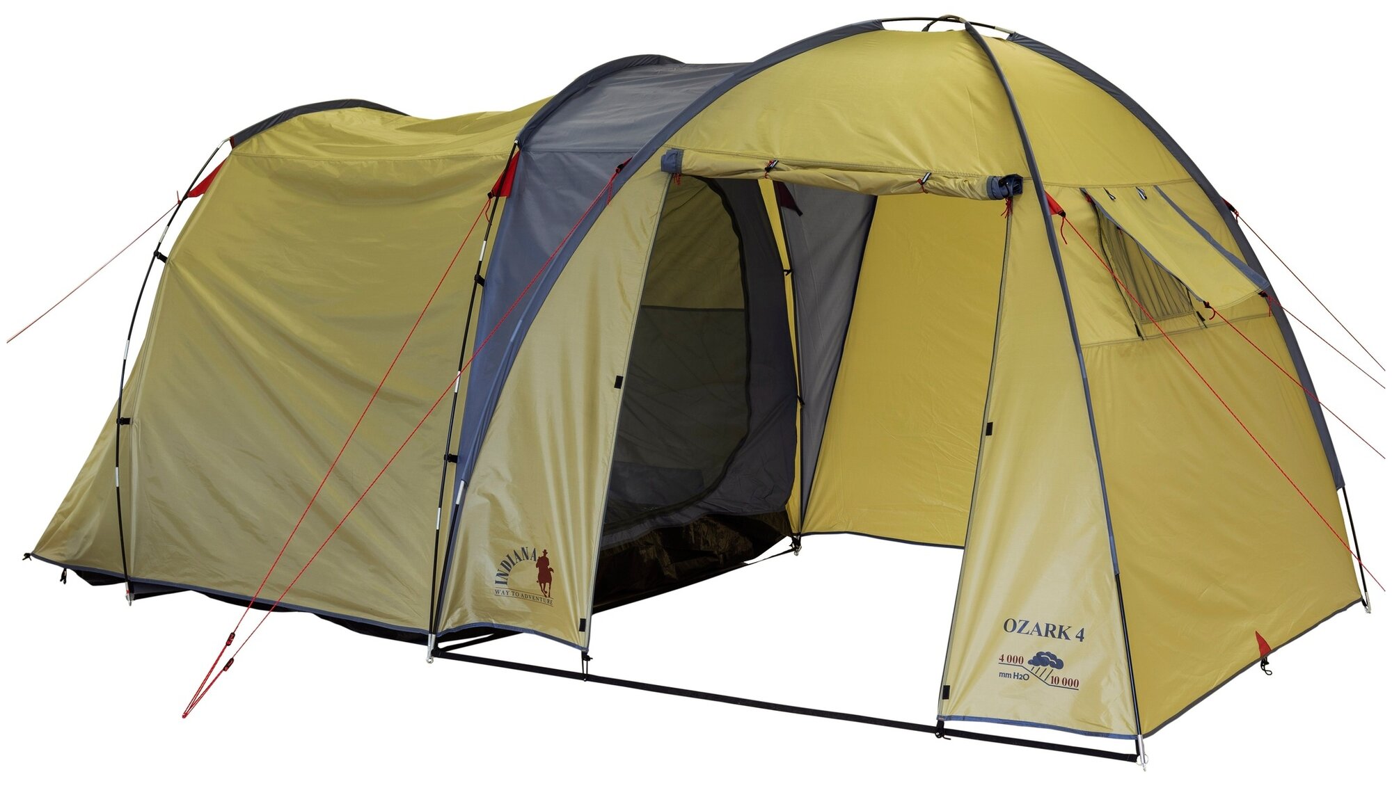 Purpose: camping, number of places: 4, features: UV protection, ventilation holes, inner pockets, inner tent, fireproof impregnation, windows, taped seams, awning, build type: outer frame, waterproof