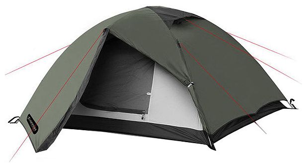 Purpose: camping, number of places: 4, features: UV protection, ventilation holes, wind / snow skirt, inside pockets, inner tent, canopy, taped seams, assembly type: outer frame