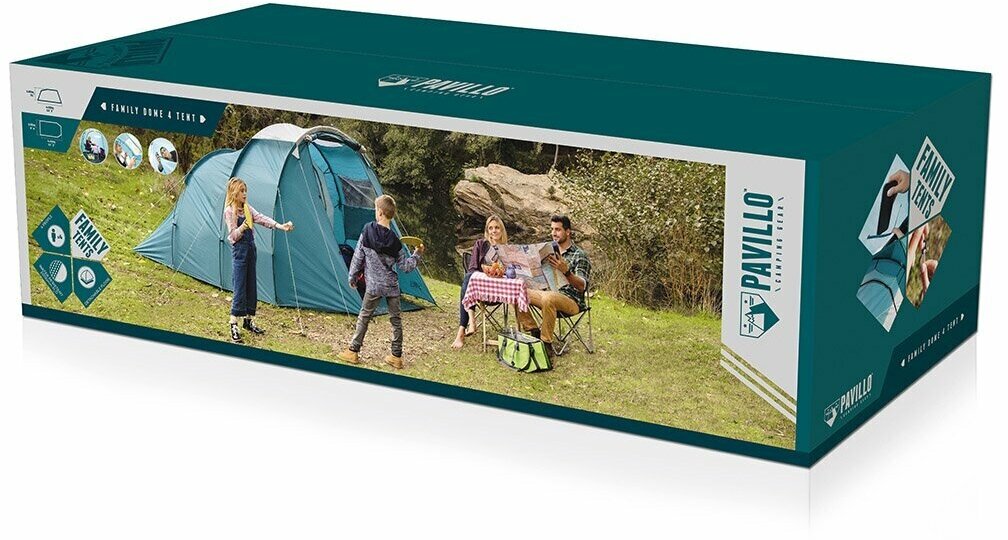Purpose: camping, number of places: 4, features: air vents, inner pockets, inner tent, fireproof impregnation, windows, assembly type: outer frame, awning water resistance: 2000 mm w.c. Art., if