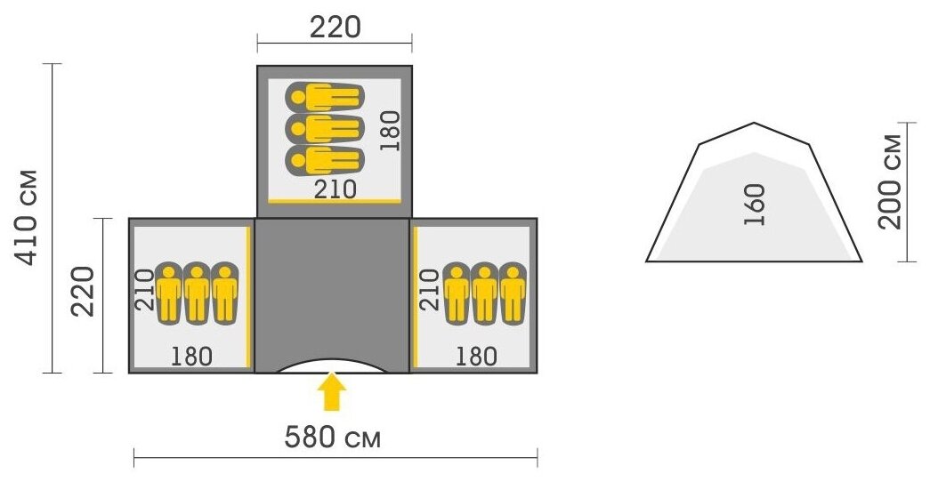 Purpose: camping, number of seats: 7 or more, features: ventilation holes, wind / snow skirt, inside pockets, inner tent, canopy, taped seams, build type: outer frame, in