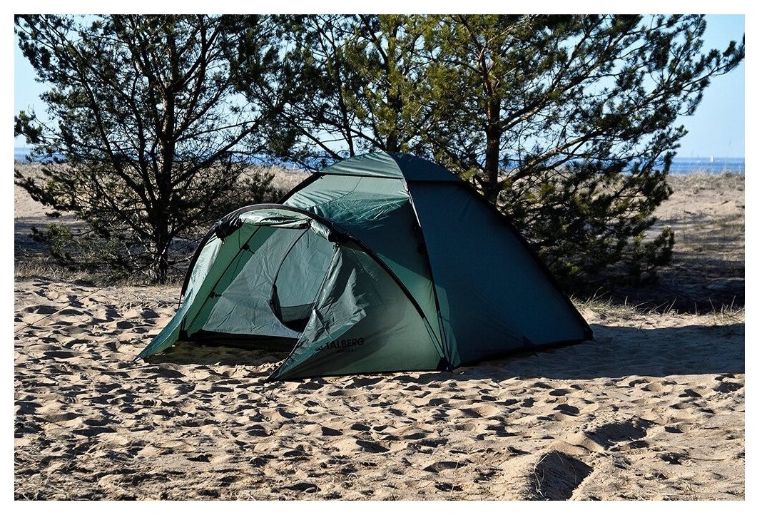 Purpose: camping, number of places: 4, features: UV protection, ventilation holes, wind / snow skirt, inside pockets, inner tent, canopy, taped seams, assembly type: outer frame