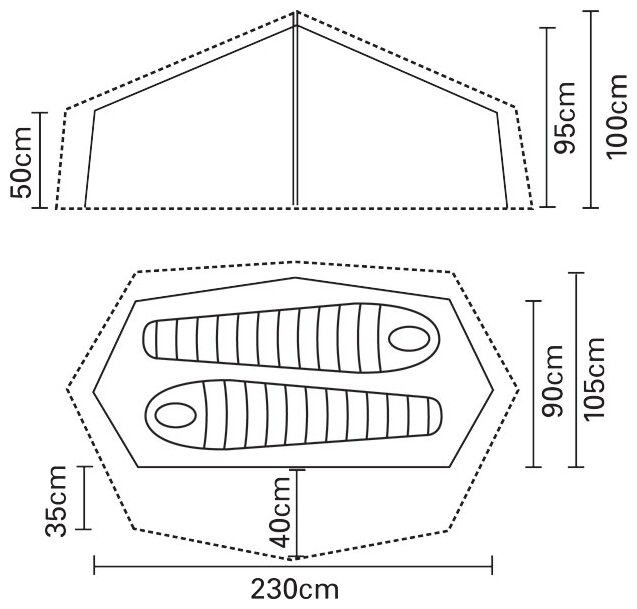 Inner tent dimensionsLxWxH: