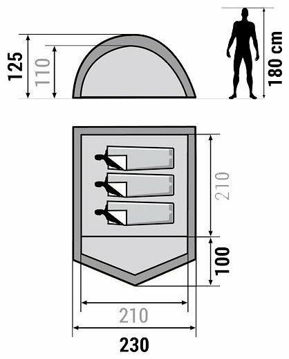 Purpose: camping, number of places: 4, features: UV protection, ventilation holes, wind / snow skirt, inside pockets, inner tent, canopy, taped seams, assembly type: outer frame