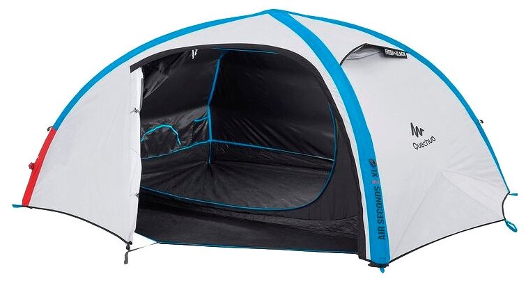 Purpose: camping, number of places: 4, features: UV protection, ventilation holes, wind / snow skirt, inside pockets, inner tent, canopy, taped seams, assembly type: outer frame