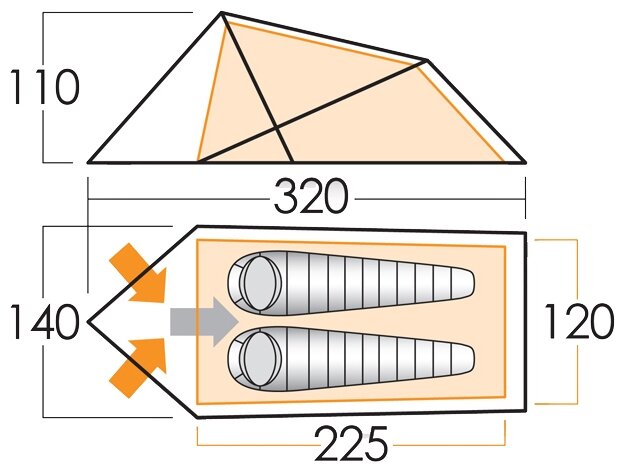 Purpose: camping, number of places: 4, features: UV protection, ventilation holes, wind / snow skirt, inside pockets, inner tent, canopy, taped seams, assembly type: outer frame