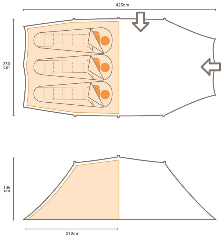 Purpose: trekking, number of seats: 3, features: ventilation holes, inner pockets, inner tent, fireproof impregnation, taped seams, build type: outer frame, awning water resistance: 3000 mm in