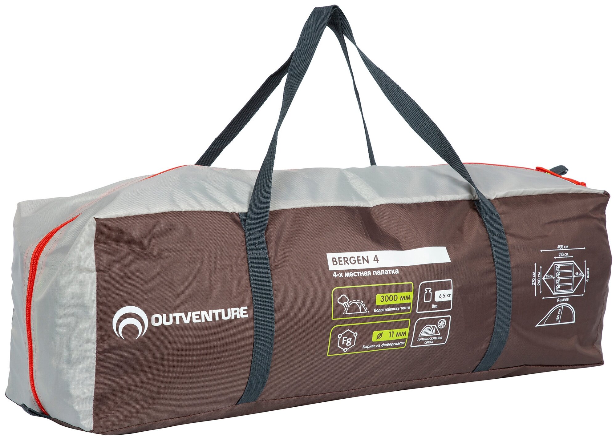 Purpose: camping, number of places: 4, features: UV protection, ventilation holes, wind / snow skirt, inside pockets, inner tent, canopy, taped seams, assembly type: outer frame