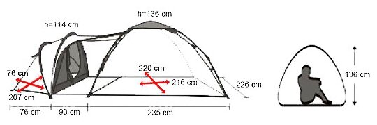 Purpose: trekking, number of places: 4, features: ventilation holes, inner pockets, inner tent, assembly type: outer frame, awning water resistance: 4000 mm w.c. Art., number of rooms: 2, number