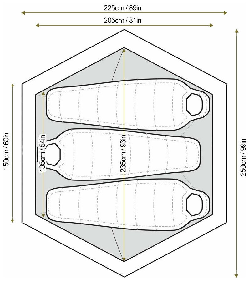 | Inner tent dimensionsLxWxH: |