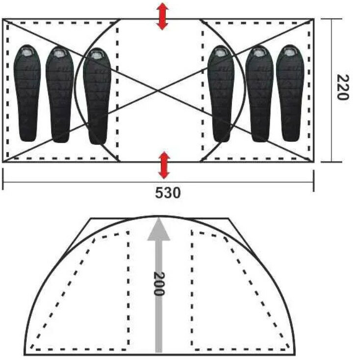 Purpose: camping, number of places: 6, features: ventilation holes, inside pockets, inner tent, canopy, windows, taped seams, assembly type: quick-assembly, outer frame, tent water resistance: 500