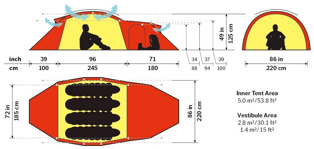 Inner tent dimensionsLxWxH: