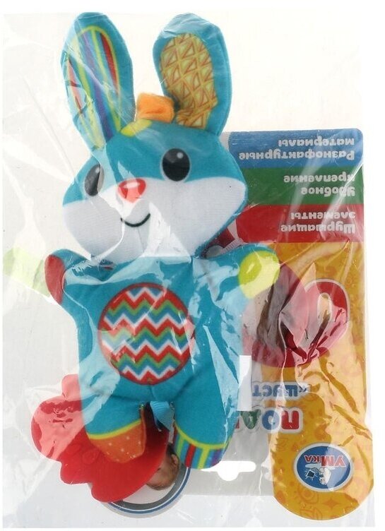 Type: hanging toy, effects: sound, educational elements: teether, tactile inserts, rustling and crunchy elements, material: plastic, textile