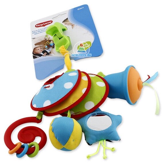 Type: hanging toy, effects: sound, educational elements: mirror, bell, rattle, teether, tactile inserts, rustling and crunchy elements, material: plastic, textile