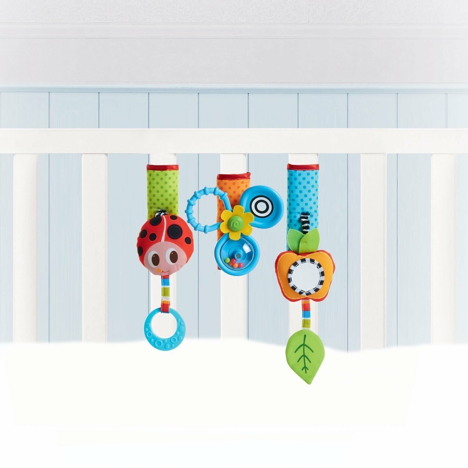 Type: set, effects: vibration, sound, educational elements: mirror, rattle, teether, tactile inserts, rustling and crispy elements, material: plastic, textile