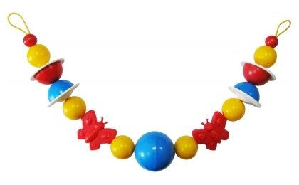 Type: stretching, effects: sound, educational elements: rattle, material: plastic, rubber