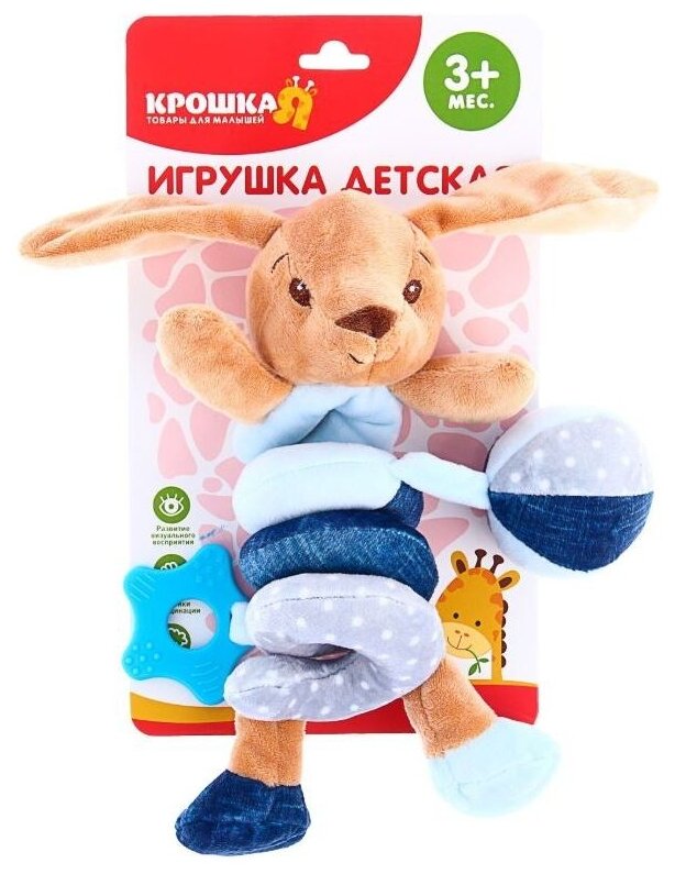 Type: stretching, effects: sound, educational elements: rattle, teether, tactile inserts, material: textile