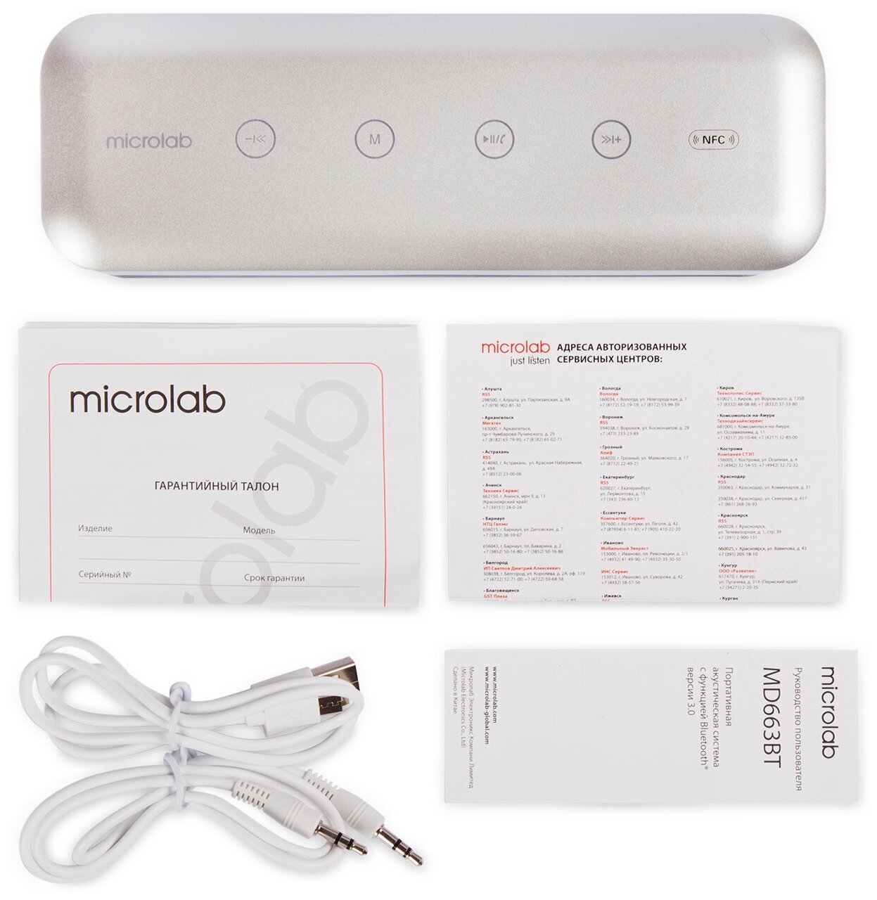 Type: stereo, total power: 6 W, wireless: Bluetooth, NFC, connectors and interfaces: audio mini jack 3.5 mm, features: FM radio, NFC, built-in microphone HandsFree function, microSD support