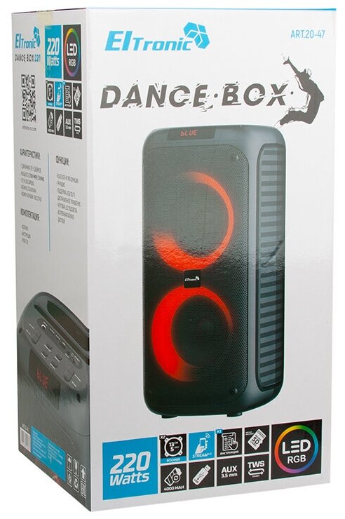 Type: stereo, total power: 22 W, wireless: Bluetooth, connectors and interfaces: audio input, mini jack 3.5 mm audio input, features: FM radio, display, microSD support, knob, lighting effects