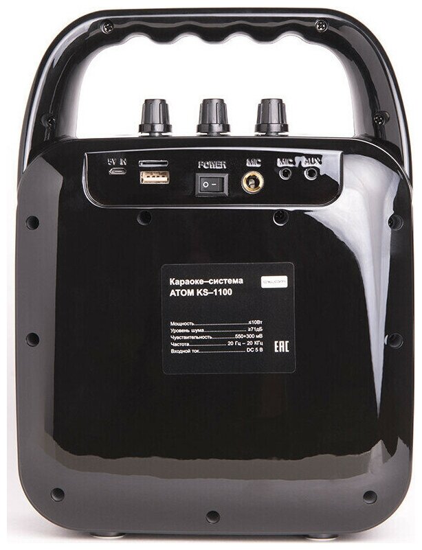 Karaoke system ATOM KS-1100, 10W, battery 2400mAh, BT up to 12m, USB, microSD, AUX, wireless microphone