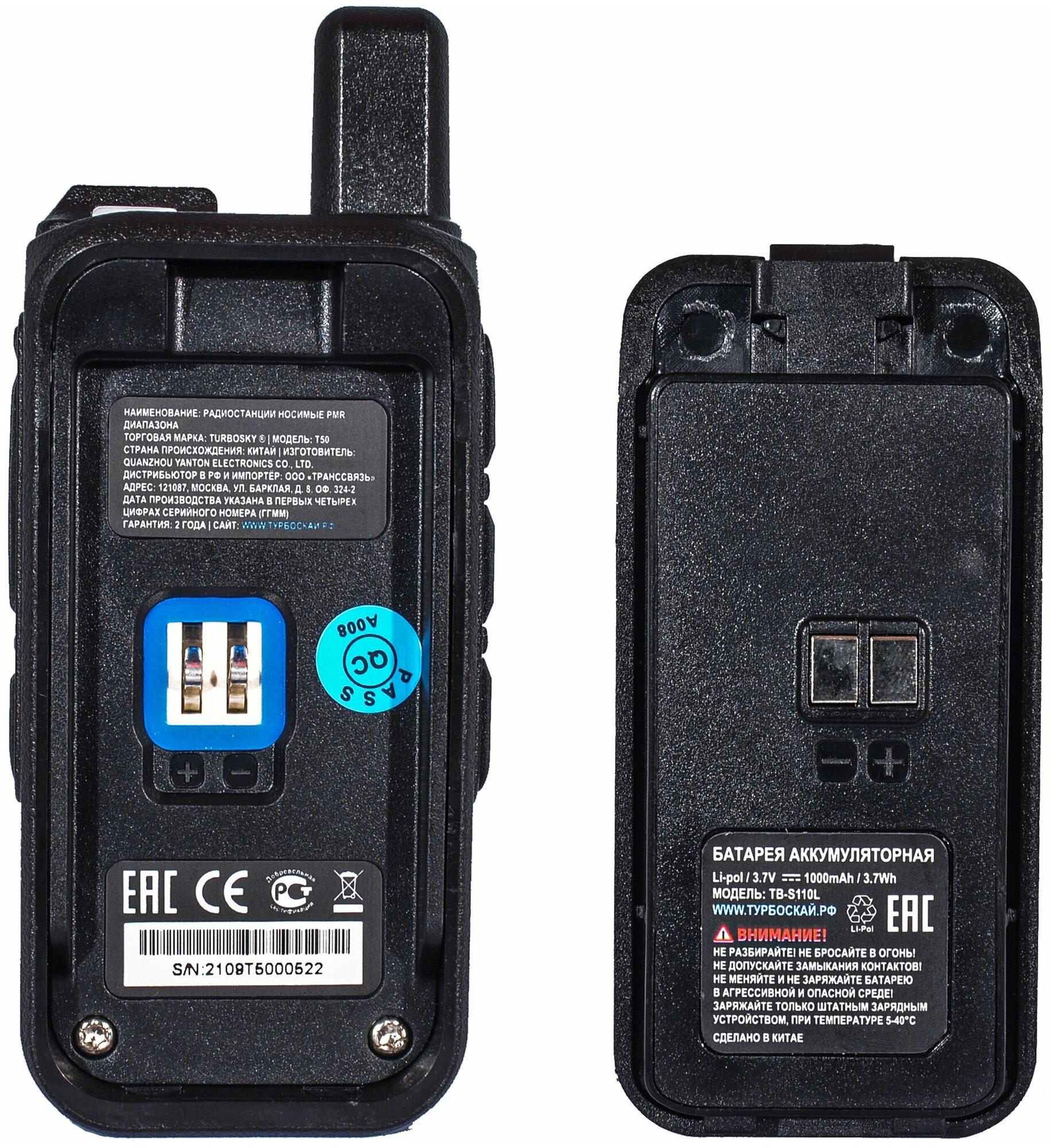 Type: walkie-talkie, number of channels: 199 pcs., transmitter power: 2 W, frequency range: PMR, frequency range, min.: 400 MHz, range: 5 km, features: CTCSS, DCS, keypad lock, channel monitoring, signal end of re