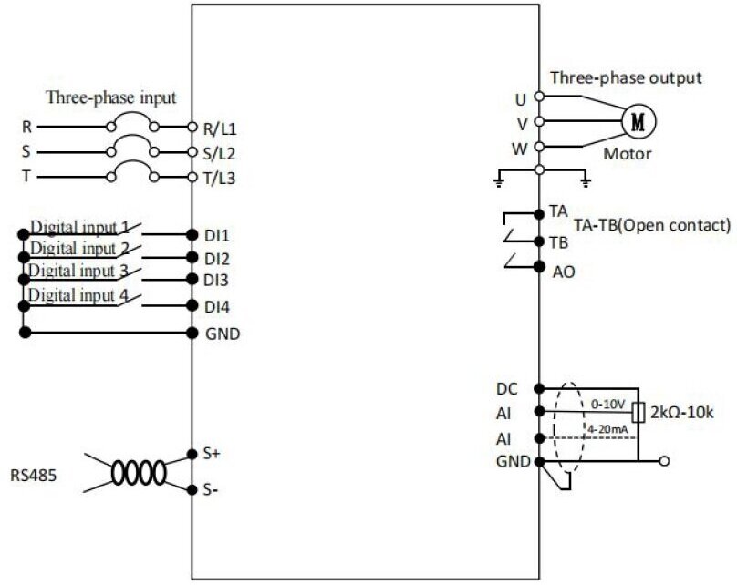 Motor power 1500 W, max. output frequency 500 Hz, supply voltage 380 V three-phase, output voltage 380 V three-phase, max. output current: 3.80 A, protection class IP20
