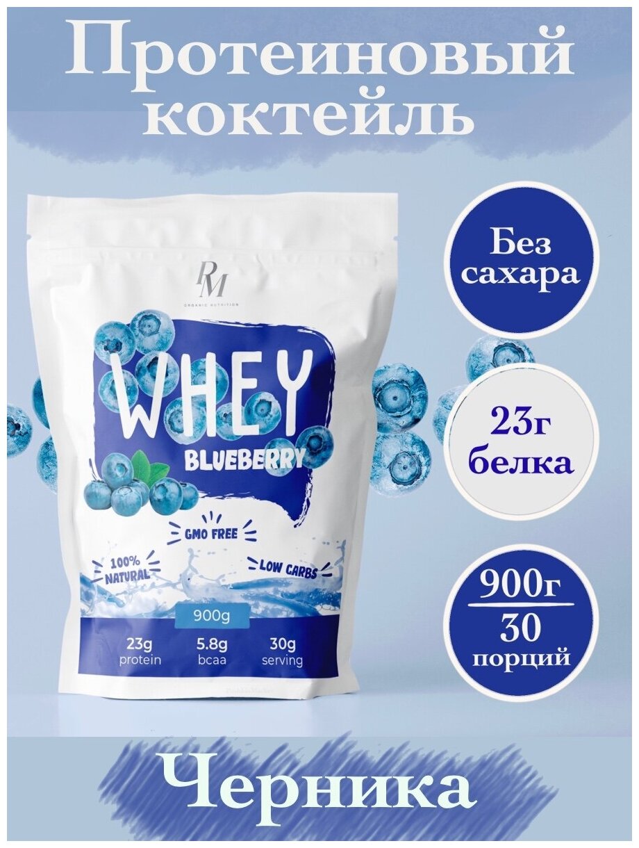 Whey protein with BCAA - Blueberry flavor, 900 grams, sugar free, Whey Protein, protein shake