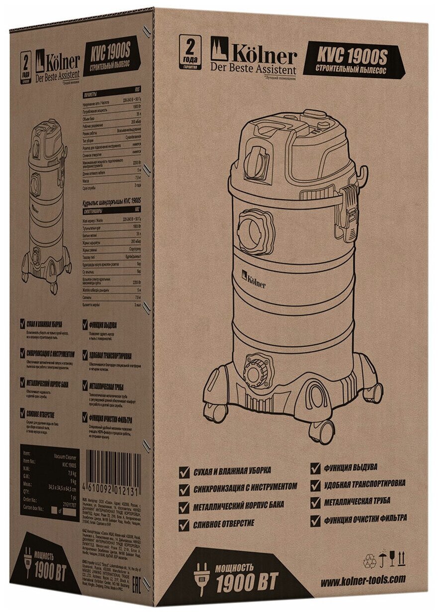 Construction vacuum cleaner KOLNER KVC 1900S, yellow