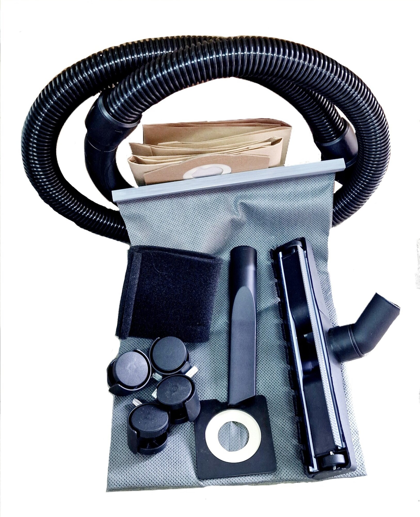 Equipment: floor nozzle, crevice nozzle, hose, filter bag, paper filter, polyurethane telescopic extension filter, instruction