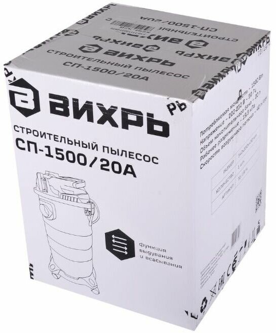 Type: professional vacuum cleaner, cleaning type: wet, dry, power: 1500 W, dust container type: bag, tank/dust container volume: 20 l, filter cleaning system: manual, vacuum: 195 mbar, air consumption: 40 l/s, hose length: 1.80 m