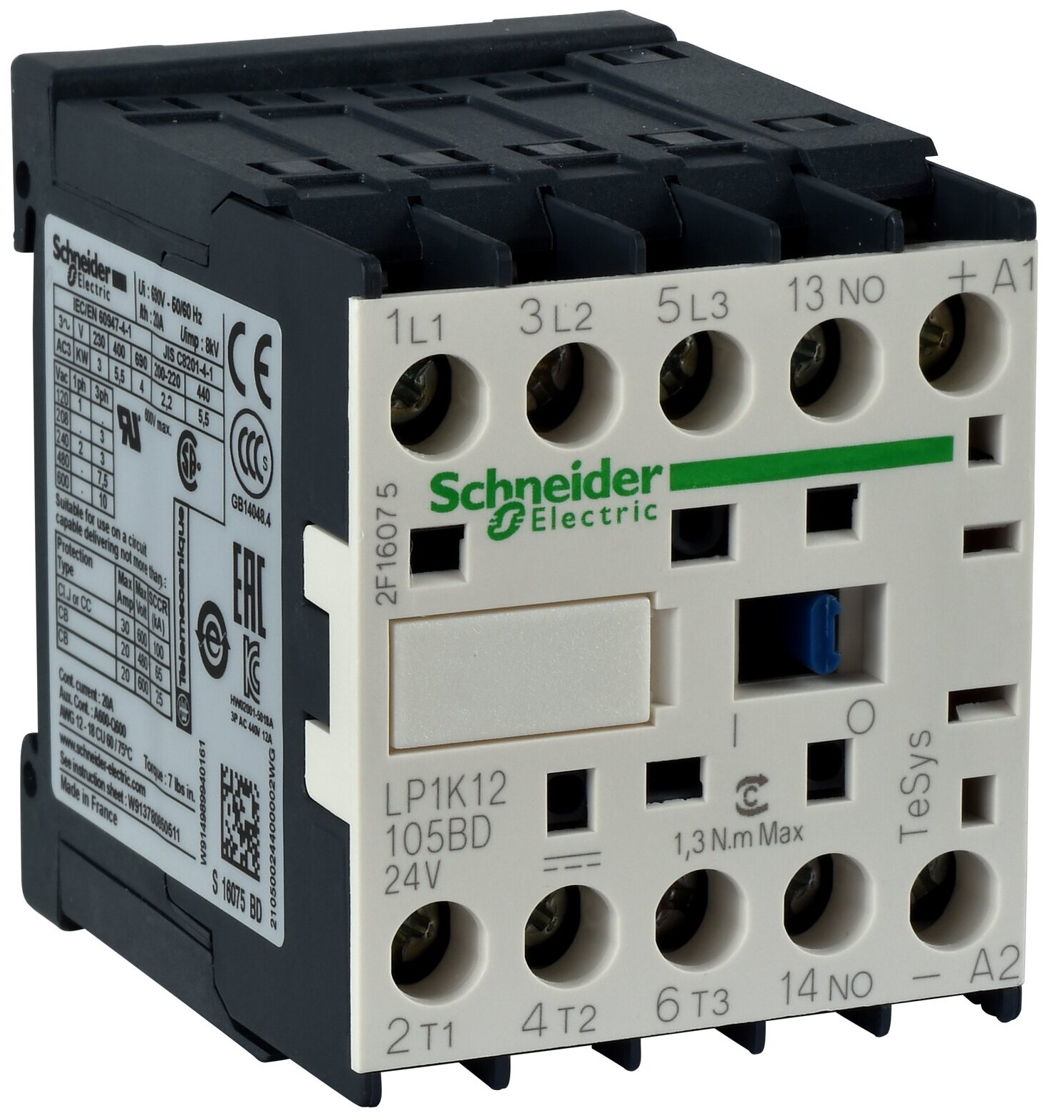 Type: magnetic starter/contactor of change. current ac, type of control voltage: DC constant, Nom. slave. current Ie at AC-1, 400 V: 20 A, Rated slave. current Ie at AC-3, 400 V: 9 A, Number of aux. normally closed NC contacts: 1, if