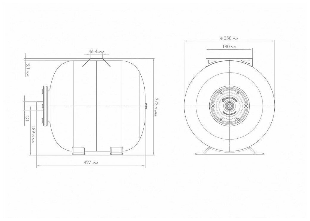 Type: hydraulic accumulator, volume: 35 l, installation: horizontal, connection diameter: 1, maximum operating pressure: 8 bar, diameter: 360 mm, height: 391 mm, length: 437 mm