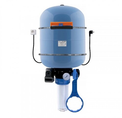 Operating environment temperature range: 1°С - 35°С; automatic control of the pump; pre-filtration of water; kit includes: ball valve, non-return valve, pressure gauge, pressure switch, cartridge filter, cal