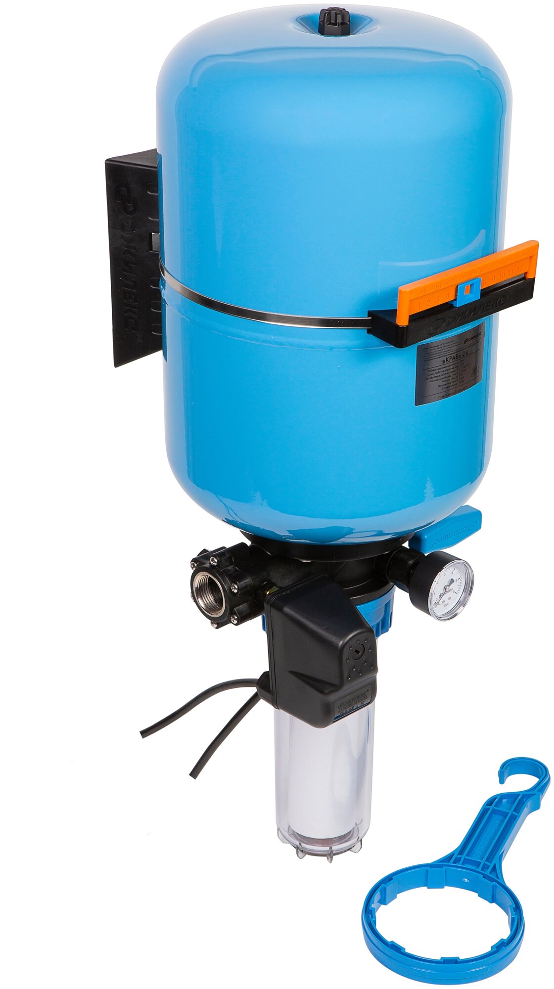 Operating environment temperature range: 1°С - 35°С; automatic control of the pump; pre-filtration of water; the kit includes: ball valve, check valve, pressure gauge, pressure switch, cartridge filter, cal