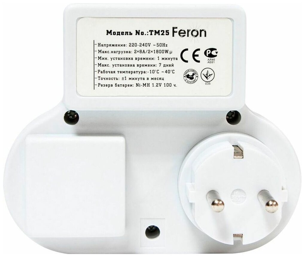 Socket-timer, number of channels: 2, timing: electronic, maximum load current: 16 A, maximum load power: 3500 W, installation method: open installation, IP20