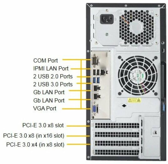 Ethernet Gigabit - RJ-45 x 2, RS-232, SATA3 x 6, USB 2.0 Type A x 6, USB 3.0 Type A x 5, VGA, management - RJ-45