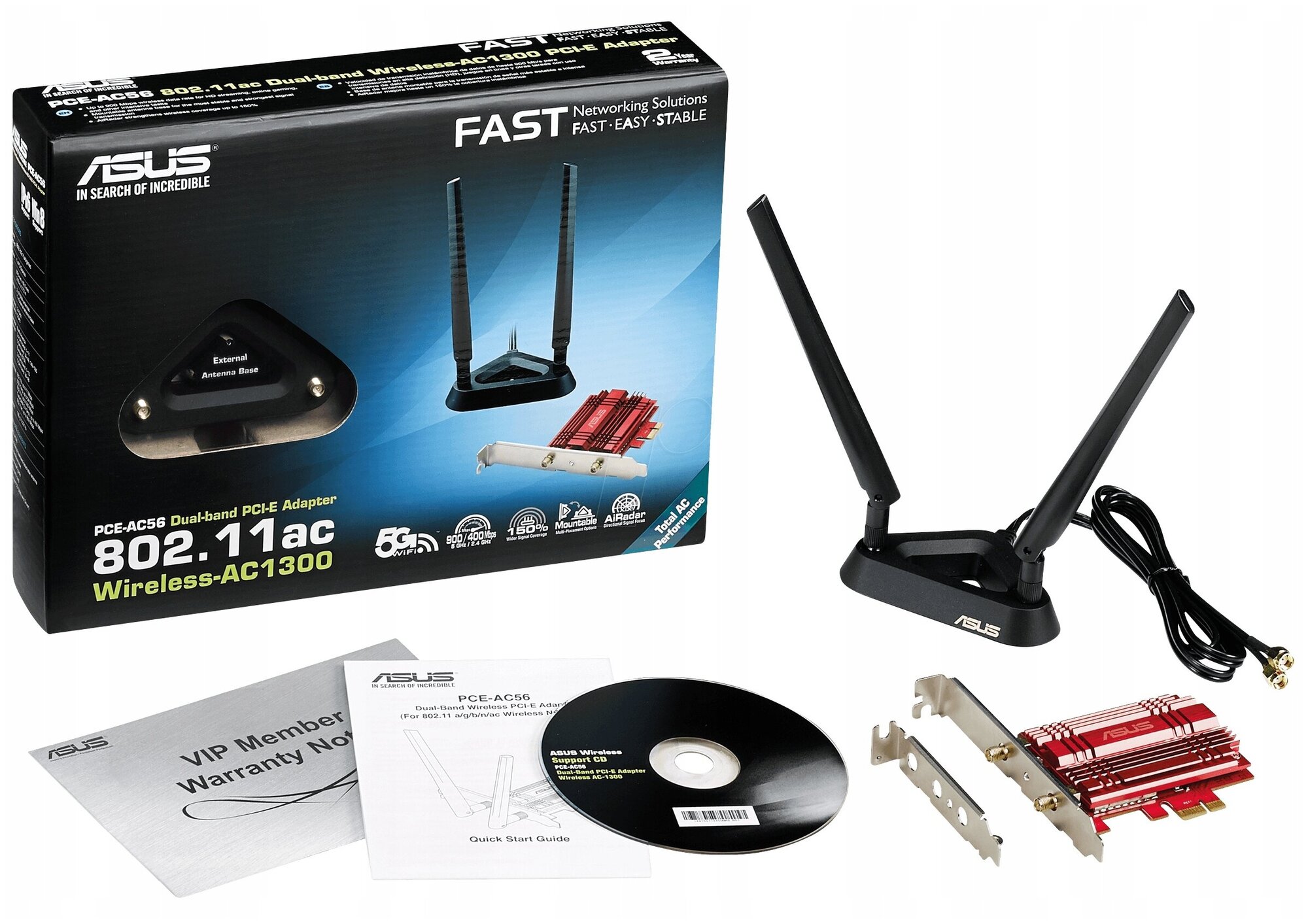 Adapter type: Wi-Fi adapter, connection interface: PCI-E, USB standard: USB 2.0, functions and features: WEP encryption, WPA encryption, WPA2 encryption, Wi-Fi 802.11 standard: a Wi-Fi 2, ac Wi-Fi 5, b Wi-Fi 1, g Wi-Fi 3, n Wi-Fi 4, Device frequency range