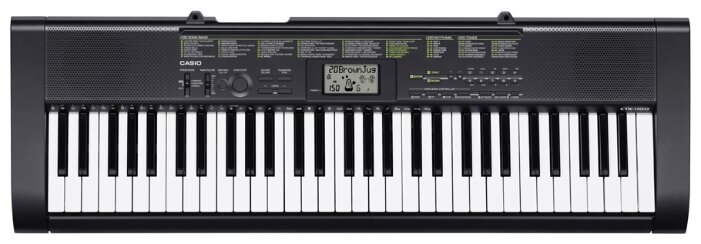 Number of keys: 61, key size: full-size, keyboard hardness: unweighted, display, pedals: no, body: compact, auto accompaniment, transposition, headphone output, built-in speaker