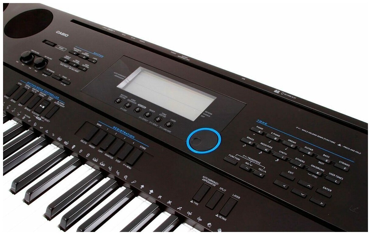Number of keys: 54, key size: full size, keyboard hardness: unweighted, display, pedals: no, body: compact, auto accompaniment, song recording, metronome, learning, split keyboard, tra