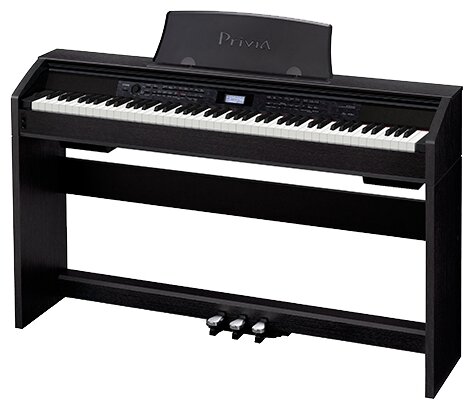 Pitch bend controller, left una corda pedal, right damper pedal, middle sostenuto pedal