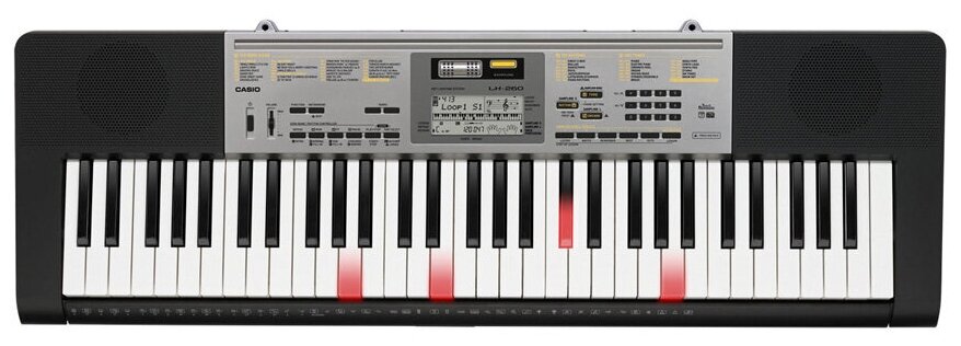 Number of keys: 61, key size: full-size, built-in microphone, display, key illumination, pedals: plug-in, body: compact, auto accompaniment, metronome, lesson, reverb, transposition, feel