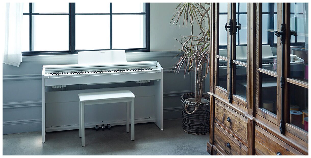 Number of keys: 88, key size: full size, keyboard stiffness: weighted, hammer action, keyboard cover, pedals: built-in, left una corda pedal, right damper pedal, middle sostenuto pedal, body: