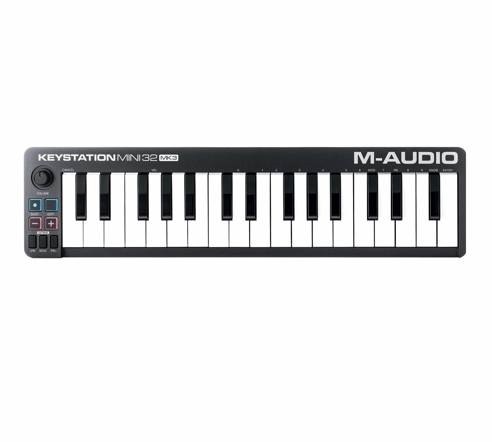 Number of keys: 32, key size: small, keyboard hardness: unweighted, pedals: no, pitch bend controller, modulation controller, body: compact, keyboard sensitivity to keyboard