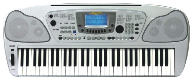 Number of keys: 54, key size: full size, keyboard hardness: unweighted, display, pedals: no, body: compact, auto accompaniment, song recording, metronome, learning, split keyboard, tra