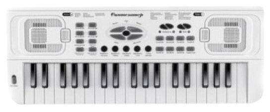 Number of keys: 37, key size: small, keyboard hardness: unweighted, pedals: no, body: compact, learning, microphone input, built-in speaker system, synthesizer for children, power supply