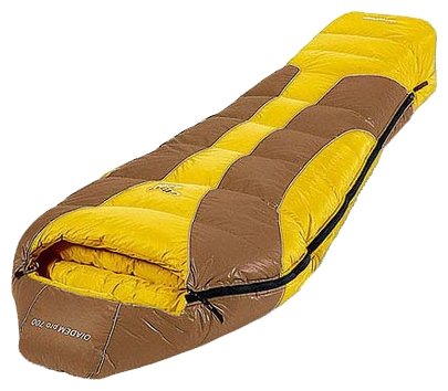 Three-season sleeping bag-cocoon, filling: down, pockets, compression bag