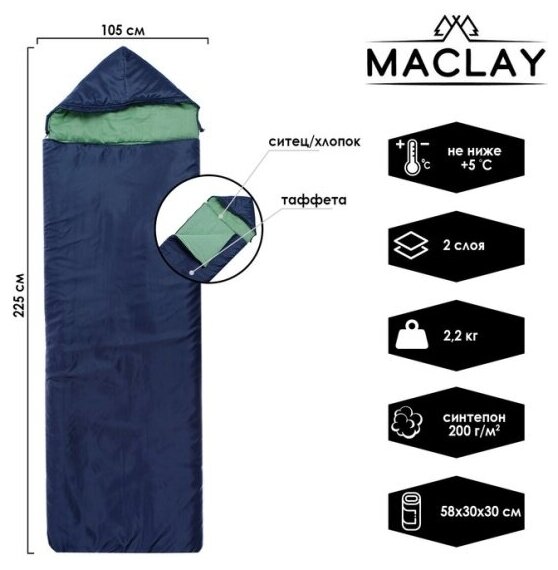 Camping sleeping bag-blanket, filling: 2-layer synthetics, comfort temperature: 5°C, can be zipped, weight 1.3 kg