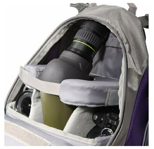 Outer pocket, phone pocket, hole for headphone cord, organizer compartment, adapter pouch