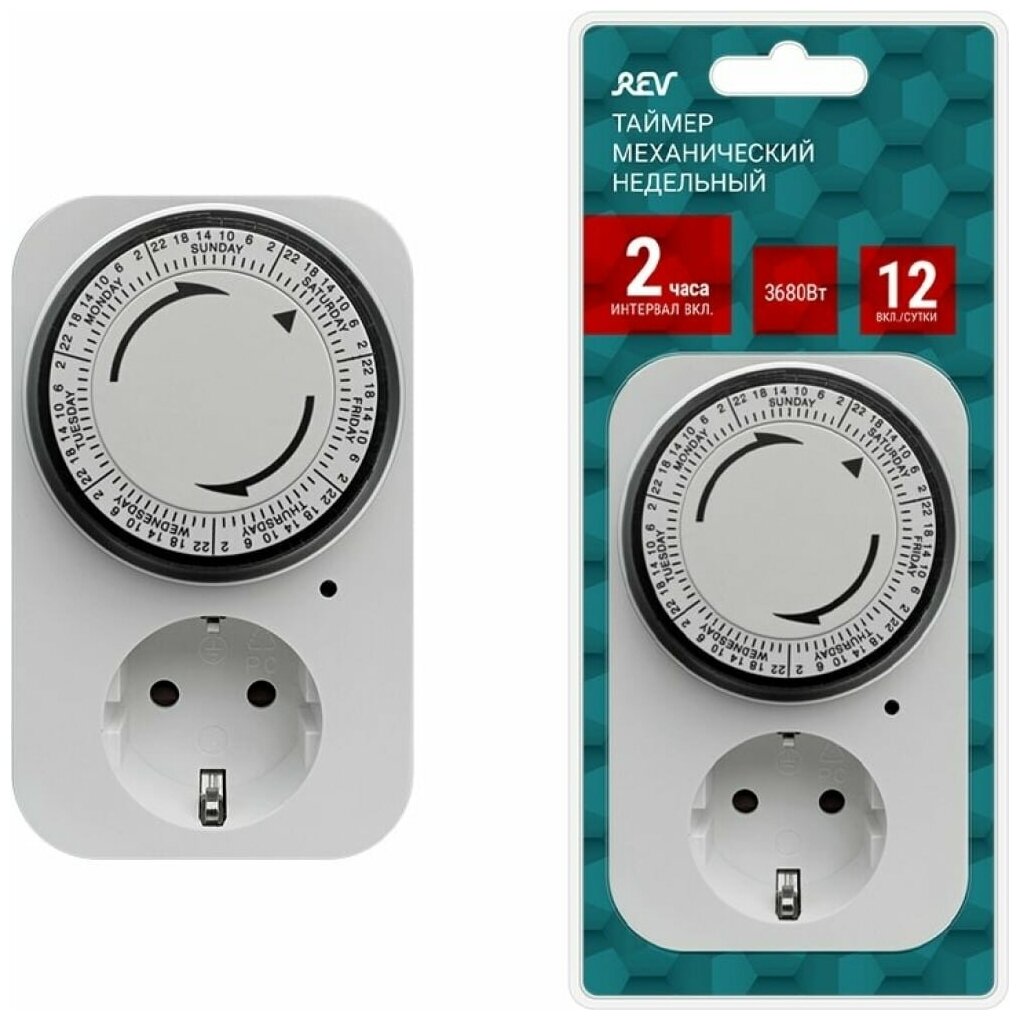 Socket-timer, number of channels: 1, timing: mechanical, maximum load current: 16 A, maximum load power: 3500 W, IP20